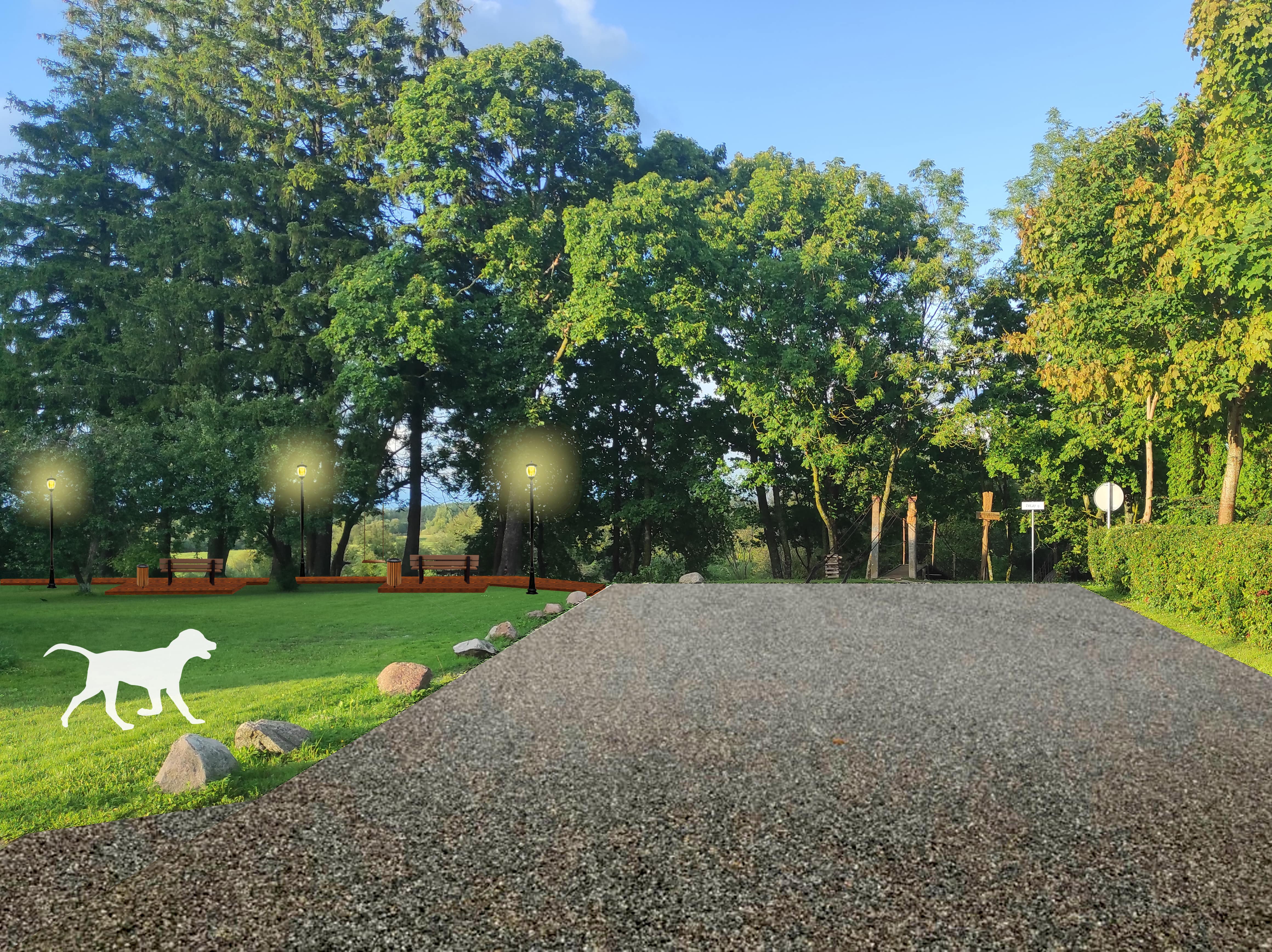 Siūlome iškloti parkavimosi aikšteles dolomitine skalda, kad atvykus netektų braidyti po balas. Taip pat bus įrengti laikikliai dviračiams!